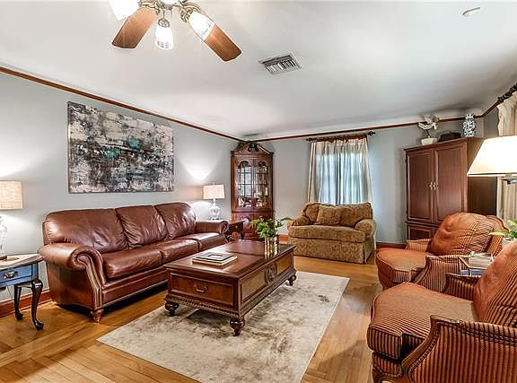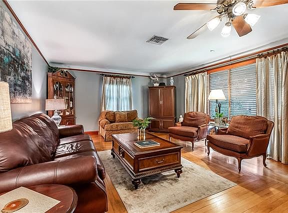 Charming, unique home in Harahan. Coved ceilings and original hardwood maple flooring give this home an old New Orleans feel. Dining room has beautiful cypress walls, cherry cabinets in kitchen. Inviting Living room and separate 15 X 30 family room that is light and bright with vaulted ceilings, custom built wet bar & desk area. Overlooks manicured rear yard with large covered patio, fountain and privacy fence. Great home for entertaining. Security system, flood zone X, never flooded.