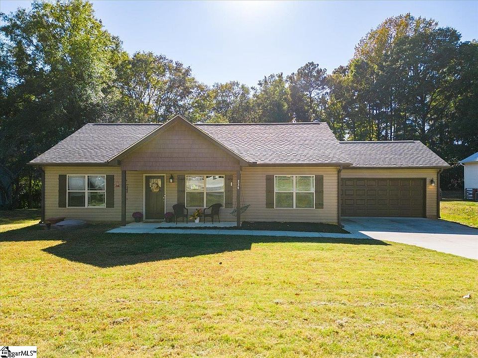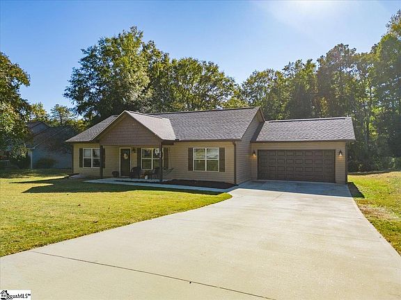 Like new ranch on almost an acre close to everything Easley and Powdersville have to offer, yet tucked quietly away. This four year old 3 bedroom, 2 bath home sits on a level, wooded lot with room to cultivate the yard and garden of your dreams. The open floorplan features vaulted ceilings, neutral colors, and the convenience of one level living. This thoughtfully designed floor plan allows for family and social gatherings in the kitchen and living area, while providing quiet privacy in the bedrooms on each side of the home. Located near it all between Hwy 153 and 123, and less than 15 minutes to downtown Greenville with low Pickens County taxes. You won't find this much value, this close to Greenville, under $300,000 much longer! This home has been well-cared for and is move-in ready.