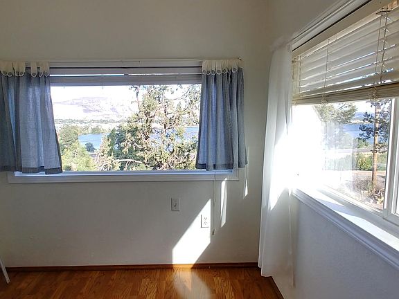 View House, Gardener's Delight: Double city lot with rock gardens. Direct view of Lake Ewana and the City. Steps down from street to house. Small master with original bathroom and added larger guest bathroom (both with showers)/ Utility Room hook ups for Laundry. Street parking, 2 designated spots for 235 Lewis St. Formal Dining room, view breakfast area, view Living room, 2 story house with one bedroom on each floor. Main floor of 1066 sq ft includes master bedroom, 2 bathrooms, kitchen, dining area, living room and breakfast area with view of Lake. Ground floor includes second bedroom or in home office, gravel floor workshop with French Doors and mechanical room for additional 928 sq. ft. Please include a phone number for direct contact with any inquiries which is recommended. No Smoking, Tenant pays utilities, pet on approval, no growing Marijuana for any reason, renters insurance (very reasonable attached to your car insurance) required. Google view of house from Google Maps. Flooring mixed from Wood, Vinyl, New Carpet, Prof Cleaned Carpet in Living room and Laminate in kitchen. If interested, drive by and view from outside first or on Google Maps. Contact via e mail and include phone number for direct contact to see inside or for inquiries as recommended.