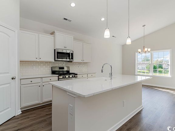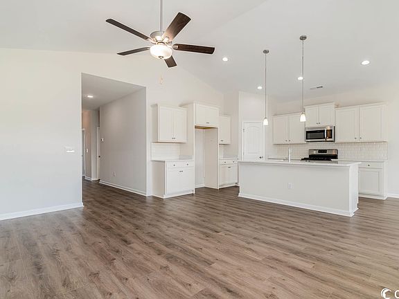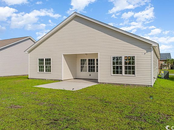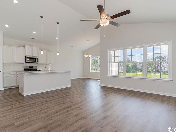 Golf cart to the beach from this beautiful Topsail floor plan is almost complete and ready for you to move into, by the local builder voted Best of the Grand Strand for the second consecutive year! In the Ocean Palms community (Voted Best Neighborhood, 2021!), and scheduled to be complete in late May. This terrific open floor plan, 3 bedroom, 2 full bath home has LVP flooring throughout - no carpet. Stainless appliances, staggered-height soft white painted Shaker-style cabinetry, marble-look quartz breakfast bar and counters, a cast iron farm sink, subway tile backsplash and pendant lights over the kitchen island combine to give you the wow factor you're looking for. Abundant recessed lighting, double windows in the adjacent dining area, triple windows in the great room and a full glass door flood the home with light. The glass door in the dining room leads to the covered rear porch and separate patio beyond, and the backyard is fully sodded, has an irrigation system front and back, and is large enough to install a pool, if you wish. The spacious owner's retreat features a long vanity with quartz counters and dual undermount sinks, an oversized walk-in shower, plenty of storage in the two huge walk-in closets, plus a tray ceiling and ceiling fan. Two additional bedrooms and a full bath are tucked off on their own hallway, for privacy. All of the homes in Ocean Palms come standard with the luxury of natural gas (tankless water heater, gas heat, and gas range). The two car garage is completely trimmed and painted, with a wifi-enabled garage door opener, and floored attic storage space accessed by drop-down stairs. Ocean Palms is conveniently located near shopping, restaurants, schools, world class medical offices and hospitals, and is only a short golf cart ride to Surfside Beach's gorgeous beach and the beautiful Atlantic Ocean. Other floor plans and inventory homes may be available. Community pool and cabana.