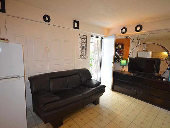 Secured Entrance, Furnished Studio with Kitchen and Common Laundry & Pool on property. 3rd floor of 3-story walk-up building (no elevator or no parking). Electric, Water, Sewer & Trash included in the monthly rent. Cable, Internet & Phone not included.