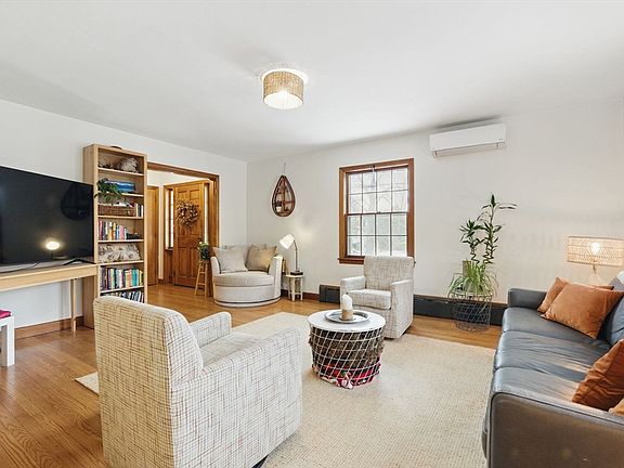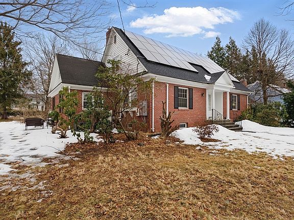 The Amherst Historic District hosts some of Amherst's most prominent and gracious homes. This spacious brick home offers the perfect combination of charm and modern convenience. Just a short stroll to Amherst College, UMass, and the town center, the location is second to none. The inviting flat backyard makes it ideal for adding an ADU. The home boasts a dining room perfect for gatherings, featuring a lined chimney fireplace that creates a cozy atmosphere. Its open-concept layout flows seamlessly into the kitchen, making it ideal for entertaining family and friends. The hardwood floors throughout add timeless warmth and character. The property offers flexibility and space for various lifestyles, with two bedrooms and one full bathroom on each floor. Additionally, the garage has been transformed into a versatile bonus room, offering endless possibilities—10.88 kW of owned solar panels.