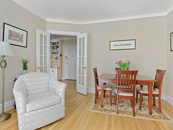 Apartment 2H at 235 Lincoln Pl is a charming, graciously laid out, and well-appointed 1 bedroom/1bathroom coop in a full-service building in prime North Slope. A gallery connects all rooms, with enough space to house a home office and a foyer with its own XL coat closet. Prewar details abound, like the gorgeous thin-planked hardwood floors with inlaid hardwood borders. Through a pair of lovely French doors is a spacious living/dining room with a corner exposure. The galley kitchen has updated appliances, a large window overlooking the serene gardens of the prewar buildings off 8th Avenue, and offers plenty of cabinet space, bartop seating, and room for two to cook. The windowed bathroom has both a marble-surround tub and a separate glass-encased shower, as well as a charming picture rail. The bedroom is massive; it can easily house a king sized bed and a full furniture set and offers ample closet space. Separate from the main living space, it's an ideal layout. Centrally located, 235 Lincoln Place is a sought-after prewar coop, distinguished by its stately portico. This pet-friendly, elevator coop building offers a doorman, live-in super, bike room, package room, communal laundry room, and additional storage is included in the sale. In the heart of North Slope, it is mere blocks from Prospect Park, Grand Army Plaza, the Central Public Library, Brooklyn Botanic Garden, and the Saturday Green Market. It is near the best of Park Slope's cafes, restaurants, shops and markets, while experiencing none of the noise. Enjoy easy access to trains at 7th Avenue and Grand Army Plaza, with the B/Q and 2/3 just minutes away.