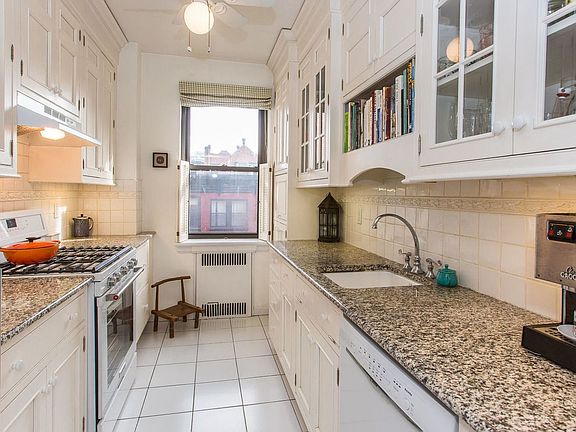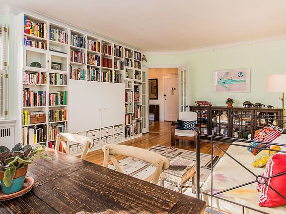 With ample proportions and gracious flow, this top-floor one bedroom in an elegant full-service elevator building exudes classic sophistication. An entry foyer with a sizable coat closet and adequate space for a home office, leads, via French doors, to the sun-splashed living/dining room with wraparound windows and a beautiful custom built-in bookshelf. The tastefully-designed windowed chef's kitchen is outfitted with custom white cabinetry, granite countertops, a Summit Refrigerator, a 5-burner range, and a Bosch dishwasher. The black and white tiled windowed bathroom sits in the hallway across from a linen closet and features a soaking tub and separate shower stall. The serene bedroom can accommodate a king-size bed with ease and boasts two generous custom closets and an oversize window. The apartment is graced with pre-war details that include refinished hardwood flooring with inlaid borders, arched entries, original moldings, and high ceilings. 235 Lincoln Place is a pre-war building in North Park Slope with a full-time doorman and live-in super, just steps to the B/Q at 7th Avenue, the 2/3 at Grand Army Plaza, Prospect Park, the Saturday Greenmarket at Grand Army Plaza, the Brooklyn Public Library, and a myriad of shops, restaurants, cafes, and services. The pet-friendly building includes a laundry room, storage, and bike storage.