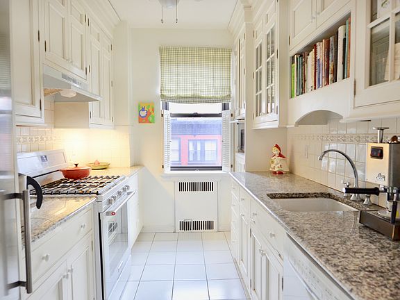 With ample proportions and gracious flow, this top-floor one bedroom in an elegant full-service elevator building exudes classic sophistication. An entry foyer with a sizable coat closet and adequate space for a home office, leads, via French doors, to the sun-splashed living/dining room with wraparound windows and a beautiful custom built-in bookshelf. The tastefully-designed windowed chef's kitchen is outfitted with custom white cabinetry, granite countertops, a Summit Refrigerator, a 5-burner range, and a Bosch dishwasher. The black and white tiled windowed bathroom sits in the hallway across from a linen closet and features a soaking tub and separate shower stall. The serene bedroom can accommodate a king-size bed with ease and boasts two generous custom closets and an oversize window. The apartment is graced with pre-war details that include refinished hardwood flooring with inlaid borders, arched entries, original moldings, and high ceilings. 235 Lincoln Place is a pre-war building in North Park Slope with a full-time doorman and live-in super, just steps to the B/Q at 7th Avenue, the 2/3 at Grand Army Plaza, Prospect Park, the Saturday Greenmarket at Grand Army Plaza, the Brooklyn Public Library, and a myriad of shops, restaurants, cafes, and services. The pet-friendly building includes a laundry room, storage, and bike storage.