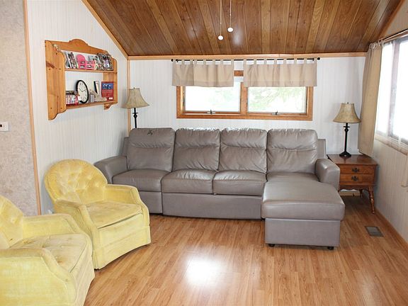 Great lake cottage sitting on the bluff overlooking Jimmerson Lake with awesome sunsets! This home sits on a level double lot with easy access to many amenities - restaurants, stores, shopping, highways, etc. All appliances and furniture are included! The living room has ample windows for natural light and an open, efficient eat-in kitchen which just perfect for weekends at the lake! There are two main bedrooms plus a 3rd, larger bunk room that could be a family room! Spacious bathroom with stand up shower and full size washer/dryer area. There is a large 12x20 storage shed on the property. Relax on the front porch, head down to your dock at the association area or check out the sandy beach or playground. Jimmerson Lake is a ski lake, part of the Lake James Chain - 5 lakes to explore! 3 ski lakes and 2 fishing lakes that total over 2,100 acres of water!