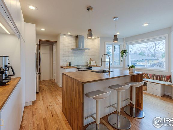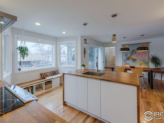 Incredible Flatirons & snow-capped views from this fully renovated 5 BR 4 BA home near parks & trails. Beautifully remodeled kit w/island, induction range, Euro style cabs, pendant lighting & fantastic mountain views. Hardwood floors & open concept great for entertaining. Spacious family room w/wood ceilings, fireplace, & views. Amazing primary suite w/walk-in closet, Euro glass shower, deep soaking tub, double vanity & American clay walls. 2 secondary BR on same level plus 3/4 BA w/floating vanity, subway tile, nice laundry w/folding counter. Adorable, play space under stairs. Fantastic addition w/2 more BR & remodeled BA make exellent separate living quarters. Wonderful yard w/multi-tiered deck, Flatirons views, peaceful patio area & kids clubhouse/shed. Oversized 2 car garage. 9.15 kw Solar PV system! Roof & evap cooler new in 2022. Walk to Manhattan MS or ride 206 Bus to Fairview. Perfect location to the park & walk to East Boulder Community Rec Center, dog park, & Bobolink Trail.