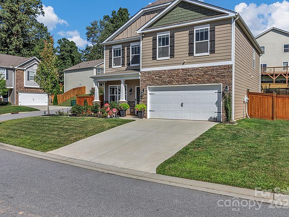 Welcome to 235 Marathon Lane in the sought-after Holbrook Village community of Candler! This 4-bedroom, 2.5-bath home sits on a desirable corner lot and offers both comfort and style with thoughtful upgrades throughout. Come inside to an inviting living room featuring upgraded Revwood flooring on the main level and a cozy fireplace in the living room. The kitchen is a chef’s delight with stainless steel appliances, granite countertops, a large island, and plenty of cabinetry for storage. All four spacious bedrooms and two full bathrooms are located upstairs, including a generous primary suite with a walk-in closet. Laundry also upstairs for added convenience. Enjoy outdoor living on the extended and covered back patio, perfect for entertaining or relaxing, overlooking a fully fenced backyard. Built with low-maintenance Hardiplank fiber cement siding, this home offers lasting durability and peace of mind. Additional highlights include a convenient half bath on the main level, ample closet space throughout, and a two-car garage. Holbrook Village residents enjoy access to a community pool and pavilion, adding to the appeal of this vibrant neighborhood along with fantastic neighbors. Conveniently located near Asheville and surrounding areas, this home combines modern comfort with community living at its best. VA loan which could possibly be assumed means possible cost savings for the buyer!