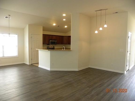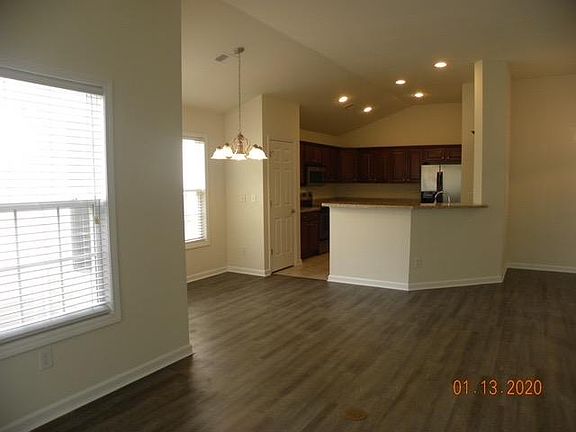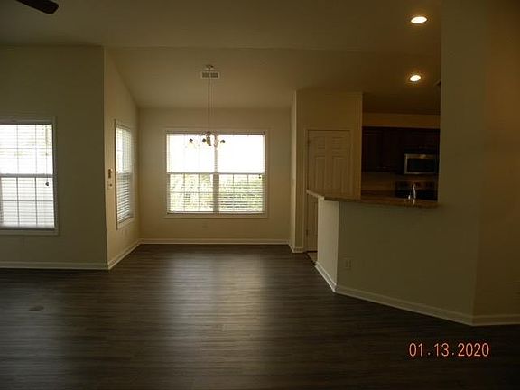 Golf course neighborhood with pool, fitness center, and clubhouse with restaurants, retail, and grocery stores, within 1 mile from community. Home has new flooring. Open floor plan. Screened in porch. Private backyard. Owner pays for HOA dues which includes trash and access to pool and fitness center. Renter is responsible for maintaining landscaping and pays for all utilities (water, sewage, electricity, internet, cable). Laundry room with hook-ups available, renter must provide washer and dryer. No smoking allowed on premises. Small dogs allowed. Parking in garage. Last month rent required with signed 12 month lease. Home is professionally cleaned and must be professionally cleaned prior to departure at end of lease.