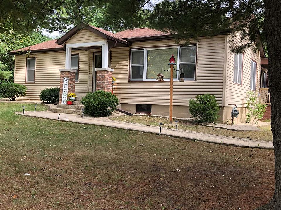 Finally, just what you have been looking for! So much character in this single-level home with a wonderful open floor plan, and amazing outdoor living spaces. This home sits on a partially fenced corner lot surrounded by mature trees with an additional lot included. The bright and spacious kitchen has loads of counter space, a walk-in pantry, all SS appliances, and hardwood flooring. The Primary bedroom has a private 1/2 bath, walk-in closet, and large windows. The 2nd and 3rd bedrooms are spacious and bright with plenty of closet space as well. A beautiful stamped concrete walkway winds through the yard from the front porch to the deck, fire pit, and through to the patio. The heated 2 car detached garage and huge side driveway with gated entry to the yard are ideal for a boat or camper!