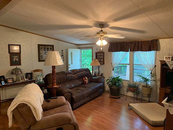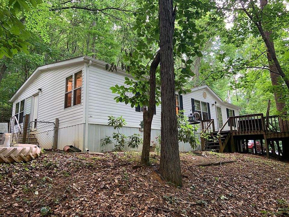 Double-wide nestled in the woods on 4.2 acres, with large deck and trees. Outbuilding (squirrel rich) and fenced in side yard for rover. Home includes Large kitchen, living room, dining area, laundry, three bedrooms and two baths. The property is being sold in ''as is'' condition. Lock Box is located on tree limb of tree in deck.