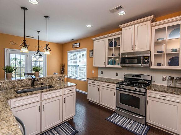Beautiful 5 bedroom home in Liberty Village. This corner lot backs to a pond for added privacy. Upon entering you will love the open and airy feel of the home. With a large dining room, as well as a flex space which would make a perfect office or child's play room. Further in there is a huge living room which is open to the kitchen. This gorgeous kitchen is complete with designer cabinets, gas range and stainless steel appliances. There is a breakfast bar, as well as eat-in space. Downstairs is an additional bedroom, connected to a full bathroom, perfect for guests! Upstairs are 3 additional bedroom which share a bath. The master is located upstairs and does not disappoint! It is absolutely huge with an en suite bathroom and large walk in closet! Outside is an attached 2 car garage.