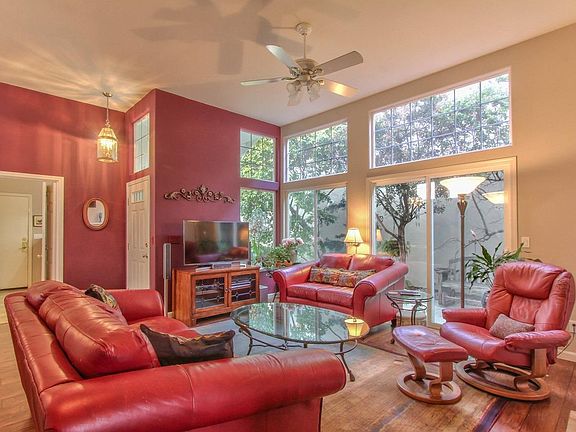 Welcome home and enjoy the lifestyle in this delightful Montclair gated community. Single story home with 2 bedrooms, 2 baths and 1300+ sq. ft. of luxury. High ceilings throughout, a comfortable living/dining area with gas log fireplace, built in cabinetry for extra storage and sliding door to cozy patio. The kitchen features maple cabinetry, gas stove top, abundant counter space and cabinetry, tile back splash and window over the corner sink. Breakfast nook perfect for morning coffee or perhaps home office. Master suite offers large closets, bath with soak tub and walk in shower. Upper row of windows in living room, dining area and kitchen allow natural light throughout the day. Manicured front yard is maintained by HOA, low maintenance and private side and back yard. 2 car attached garage. Stucco exterior painted in 2019, tile roof. Truly a special place to live.