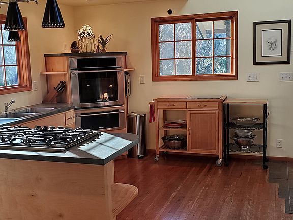 - Vaulted Ceiling(s), Skylight(s), Wood Stove, Wood Floors, Laundry, Wall to Wall Carpet, Gas Appliances, Sliding Doors, Slate Flooring, Wood Window-Double Paned