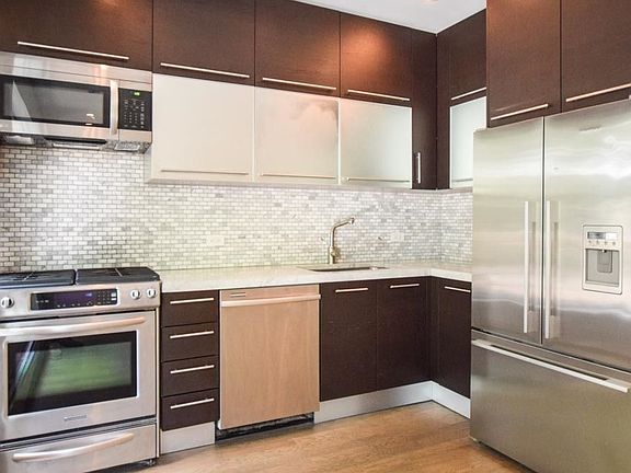 Condo quality fixtures, appliances and finishes crafted by award winning builders Core Development Group with double wall oven, cook top, microwave with hood and 48 Inch refrigerator. Kitchen also features marble counters, stainless steel appliance package including a full size dishwasher. 9' ceilings, solid core doors with Omnia hardware and a full sized washer/dryer in the unit. This apartment has a master bedroom with en suite bath. Each bathroom is engulfed in marble, has whirlpool bathtubs and rain shower, spa like quality and fog free make up mirrors.