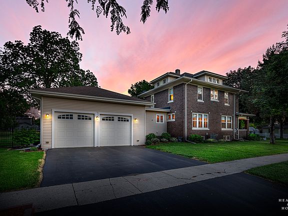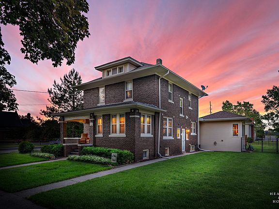 Welcome to this timeless, turn-of-the-century brick home, where Old World artistry meets modern comfort. Situated on an expansive 99' x 157' corner lot in-town, this iconic residence boasts a charming front porch, fenced yard, and attached garage wrapped up in perfect landscaping. Original hardwood flooring, doors, trim, and plaster walls exude classic elegance throughout. The addition of a spacious family room, oversized heated garage, and convenient first-floor full bath seamlessly blend historic charm with contemporary convenience. Entertain with ease in the generous formal living and dining areas, enhanced by stained glass windows and intricate woodwork. The updated kitchen features prairie-style quarter-sawn oak cabinets, walk-in pantry, and new modern appliances, while the adjacent family room opens onto the expansive cedar deck and lush fenced yard. The first-floor bedroom with unique and charming bonus nook are perfect for different needs or an office, play room or guest room! Upstairs, four more well-appointed bedrooms await, complemented by hardwood floors, ample storage, and a remodeled full bath. The walk-up attic presents further expansion possibilities, while the bright basement offers versatile space for recreation, storage, or additional living quarters. The oversized heated garage boasts 11' ceilings, epoxy floors, and a service door to the fenced yard, while upgrades including 200 AMP electrical, high-efficiency HVAC, and insulated attic ensure comfort and efficiency year-round. Additionally, the kitchen appliances, water heater, and washer/dryer have been replaced with new units within the last three years. Immaculately maintained and meticulously cared for, this Marengo gem stands as a testament to the finest in period home craftsmanship. Experience the pinnacle of old-world charm and modern luxury of this home and the convenience of being walking distance to parks, schools, restaurants and more, with a front row seat to the parades and celebrations that make Marengo so special! Come make this perfectly preserved, gigantic classic home yours!