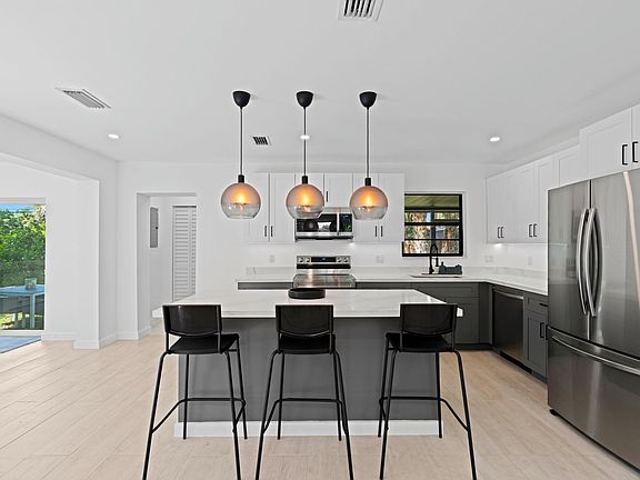 RARE OPPORTUNITY! STUNNING 2023 NEWLY RENOVATED SINGLE-FAMILY HOME ON OVERSIZED LOT IN EAST BOCA RATON! Excellent Workmanship & Materials | Bright Open Split Floor Plan | Porcelain Floors | LED Recessed Lighting! Huge Eat-Kitchen | White Wood Cabinets | Quartz Counters | NEW S/S Appliances | Center Island! Tropical Lush Fenced Backyard | Screened Patio! Impressive Master Bedroom | Large Closet | Ensuite Dual Sink Vanity & Glass Shower. Front Loader Washer & Dryer. Large Driveway. Immaculate & Manicured. Landscaping. Bike to Beach! Minutes to FAU, Mizner Park,, Royal Palm Plaza, I95 & Atlantic Ave! PRESENT ALL OFFERS! Roof 2006.