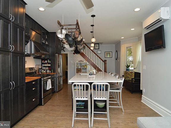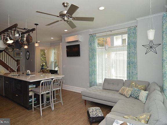 Check out this well maintained and beautiful twin! Large kitchen designed for entertaining including an oversized island with quartz top, smokey gray cabinetry w/soft closing and fully extended drawers, stainless steel appliances, some glass front doors,updated lighting--fantastic! The space also accommodates upholstered guest seating for hanging out & relaxing. Family room features LVP waterproof flooring, space for group seating with an exit to side porch and shaded deck. There's a main floor powder room for convenience and air conditioning on the main floor via mini splits. On 2nd floor you'll find an updated full bath, hardwood floors throughout all 3 bedrooms, charming decor. Third floor offers an awesome finished space which could be a 4th bedroom, hobby space, zen space -- you name it. Outside you'll enjoy a fenced yard, gardens, oversized one car garage and off street parking and storage shed. Walk to schools, conveniences, park. This home is move in ready and a must see!