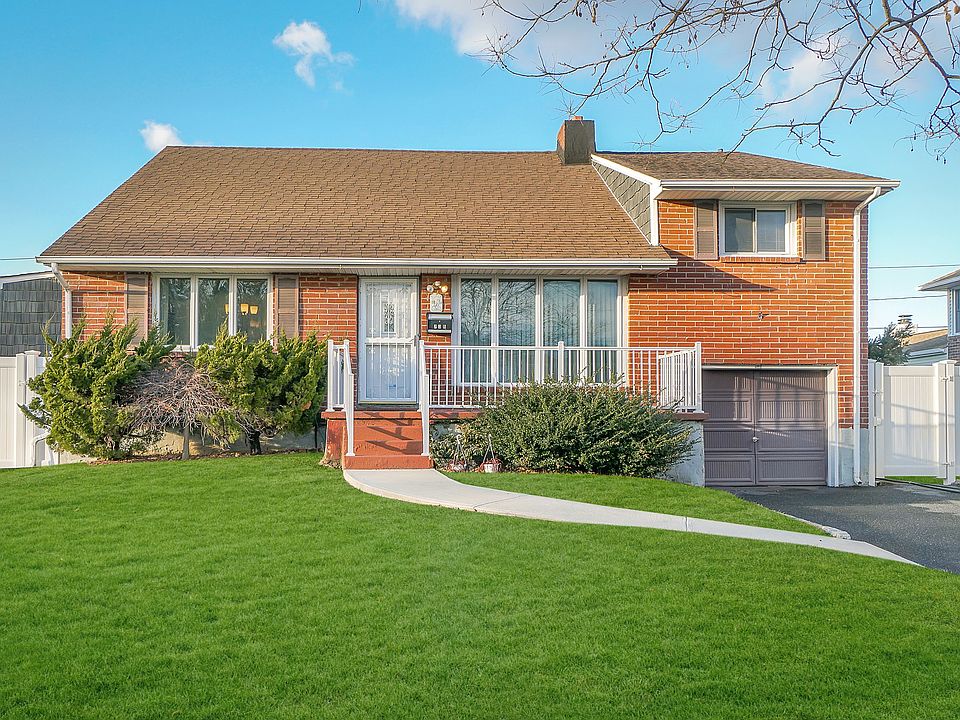 Center Hall Brick Split Features: Formal Living Room W/Wood Burning Fireplace, Extended Eat-In Kitchen W/Granite Counters, Gleeming Hardwood Floors, Updated Baths, Master Br En-Suite, Huge Walk-up Attic, Large Family Room, Powder Room, 5th Bedroom. Kitchen, to Outside Entrance to Backyard/Party Deck, Beautiful Fin Basement (Rec Room), Attached Garage, 200 Amps, Landscaped Property 101' Side/Back 104" Deep, Plainedge SD#18 Charles Schwarting Elementary School, Quiet No-Through Street