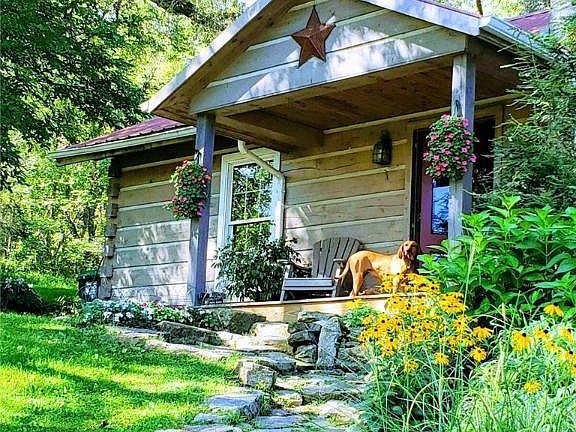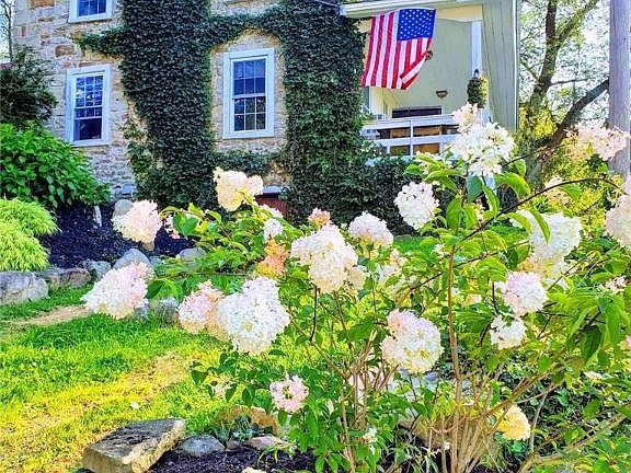 Take a close look at this fabulous home and fall in love with the Bucolic setting. Located at the base Bake Oven Knob, this 18th century stone farm house has so much character. Slate window sills, plank floors, 10' ceilings, original doors and trim, wide stair case- a 24 x 26 Great Room w/ 14' ceilings, radiant heated floor, featuring a stone corner fireplace, is The Gathering Place of the Home. The 2 1/4 acre setting with a babbling brook, mature trees, a smoke house and a walk-in root cellar add to the charm. Property is complete w/ a 36x40/4 CAR garage w/ loft, lean/to and carport w/storage. With this property you have option to use house with rustic character of some rooms or finish to your personal taste.
