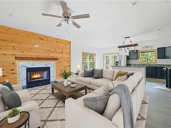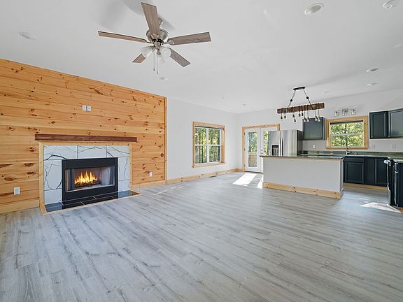 Cozy fireplaceCraftsman-style homeFenced backyard spaceSpacious islandOpen-concept floor planStainless steel appliancesModern kitchen