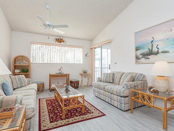 Step into this second floor walk up and feel right at home. This two bedroom, two bathroom condo is fully furnished and ready! Brand NEW AC, flooring and bathroom vanities, high ceilings and loads of light piercing through this unit make it a must see. Gated community boasts three pools, tennis courts, exercise room, private beach access and more.