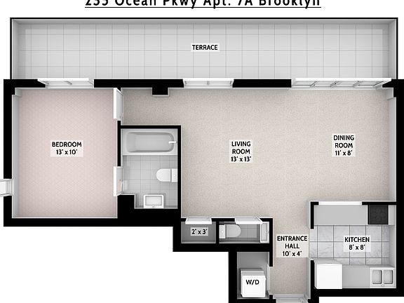 Sky-High Living with a Private Outdoor Oasis At 235 Ocean Parkway #7A, experience indoor-outdoor living like never before. With 31 feet of frontage, this apartment features a massive 440 square-foot private terrace that spans the full width of the homean outdoor sanctuary that feels like an extension of your living room. Perched on the 7th floor, enjoy panoramic, treetop views of Brooklyn with 180-degree exposure, ideal for entertaining, relaxing, or enjoying a sunset. Whether it's dinner parties, lounging with a book, or a mid-afternoon nap in a hammock, this terrace delivers. Inside, the renovated 720 square-foot interior blends comfort and functionality. The spacious open-concept living area flows seamlessly into a pass-through galley kitchen, offering sightlines straight to the terracekeeping you connected with guests and the view. The kitchen is equipped with granite countertops, stainless steel appliances, built-in shelving, and a space-saving overhead microwave with under-cabinet lighting, making it both stylish and efficient. Additional highlights include: - In-unit washer/dryer - Central air conditioninga rarity in buildings of this era - Primary en-suite full bath and a convenient half bath for guests - Pet-friendly building - Access to a shared rooftop deck for an elevated change of scenery Ideally located near the B, F, G, and express Q trains, and just a short walk to Prospect Parkthis home offers both tranquility and connectivity.
