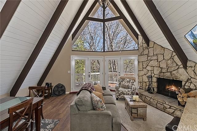 Open floor plan that we all Love! Large main level living room features high vaulted ceilings, a wall of glass and a fireplace! Open kitchen with granite countertops. The main level offers 2 bedrooms & 1 bath. Upper level has 1 bedroom, 1 bath and a loft area. Lower Level has a generous size family room with fireplace, a 4th bedroom, 1 bath and laundry.Recent upgrades included hardwood flooring & carpet bathrooms. Loads of storage in the build-up. Several decks with nice views! Front parking deck, plus extra rear parking off the access road. Full lake rights too!