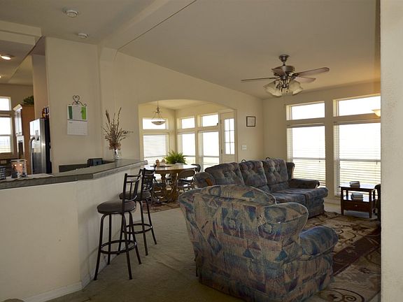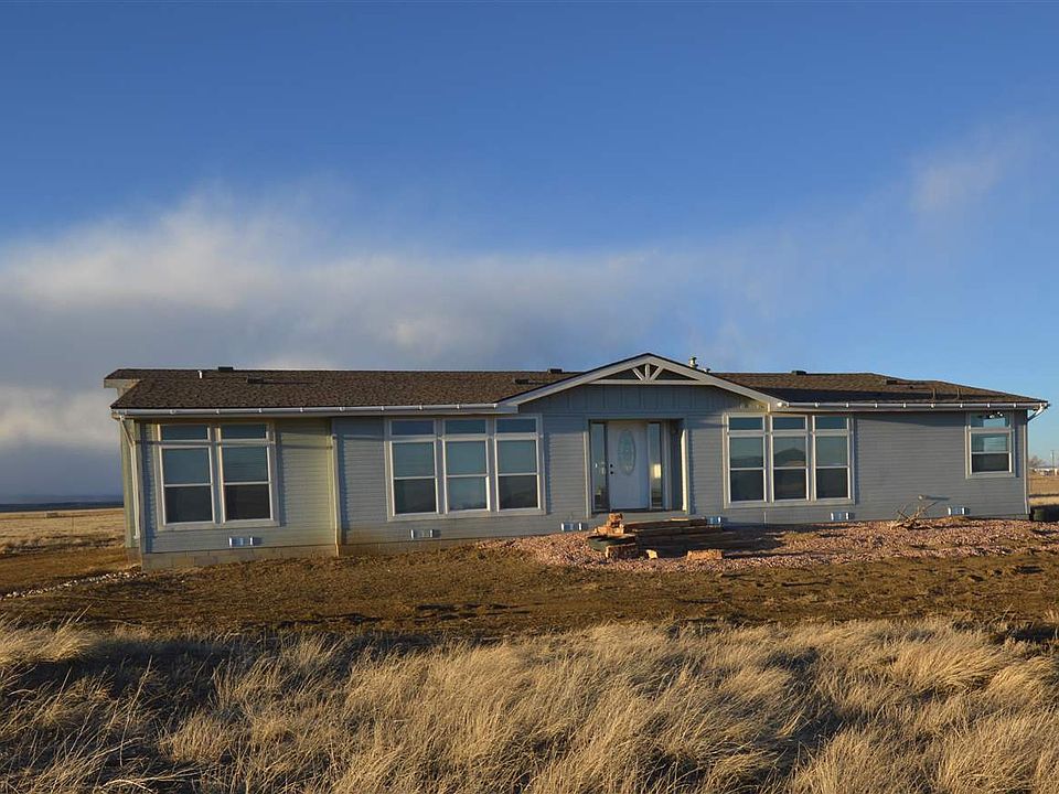 Spacious 2612 sq. ft. triple-wide manufactured home on permanent foundation on 4.90 acres MOL, just 7 minutes north of Las Vegas! Enjoy wide -open views of the plains to the south, Hermit's Peak and surrounding mountains to the north, with easy access to I25. This well maintained, open floor plan home has 4 bedrooms, 2 -1/2 baths, family room with fireplace, formal dining room, kitchen with plenty of cabinets and counters, island and breakfast bar. On private well and septic. Priced to sell quickly!