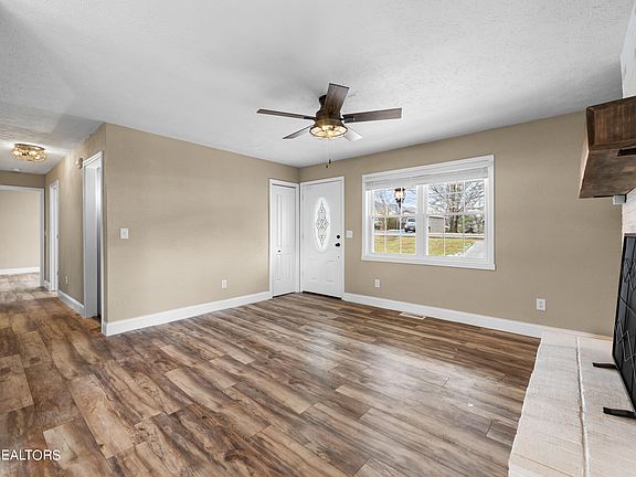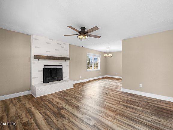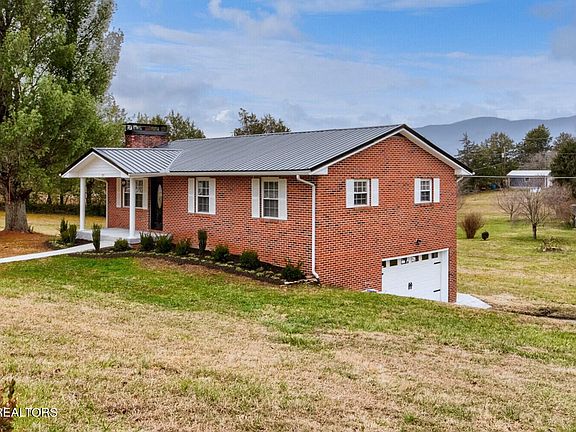 Location, location, location! Check out this charming brick rancher located in the heart of Jacksboro! Recently renovated, this home boasts an extensive list of upgrades, including a brand-new roof, pergo flooring, fresh paint, fully renovated baths, upgraded plumbing, contemporary light fixtures, and much more. Upon entering, you'll be greeted by a cozy living room complemented with a wood-burning fireplace. The brand-new kitchen is lovely, featuring white shaker-style cabinetry, granite countertops, a farmhouse sink, and stainless-steel appliances. The primary bedroom has its own newly designed ensuite. Venture downstairs to discover a generously sized recreational room, ideal for a home office or a great hangout spot - complete with its own full bath. Outside, appreciate the low-maintenance, elegant brick exterior, and the striking new black metal roof. The back deck provides stunning views of the Cumberland Mountains, overlooking your level backyard. Benefiting from being located within city limits, this home offers the convenience of all essential services including trash pickup. The remodeling process spared no detail, ensuring this property shines as the true gem it is! Situated just minutes away from Norris Lake, ATV trails, and I-75, this opportunity should not be overlooked. Call today to schedule your private tour!