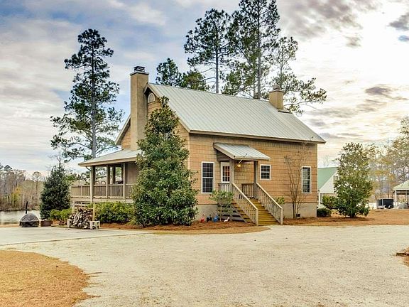 Great home on waterfront bluff overlooking Black River. This four room plan offers two masters, one on the first floor with views of the river and access to large deck and another on the second with its own views and a fireplace. Two additional guest rooms share a bath. Pecky cypress finished great room and kitchen combo features an open layout with dining, pantry and a powder room. An over-sized detached garage to keep all your watersport toys and above you will find a huge finished bonus room for guest or in-laws. Whether you are entertaining a crowd or looking for an escape this home works. This is a quiet and serene spot on just over an acre and a half with expansive views. Black river is long, deep, and great for fishing, paddling, and boating.