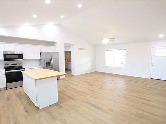 - Ceiling Fan(s), Kitchen/Dining Room Combo, Open Floorplan, Vaulted Ceiling(s), Walk-In Closet(s), Kitchen Island, Granite Counters, Double Vanity, Shower