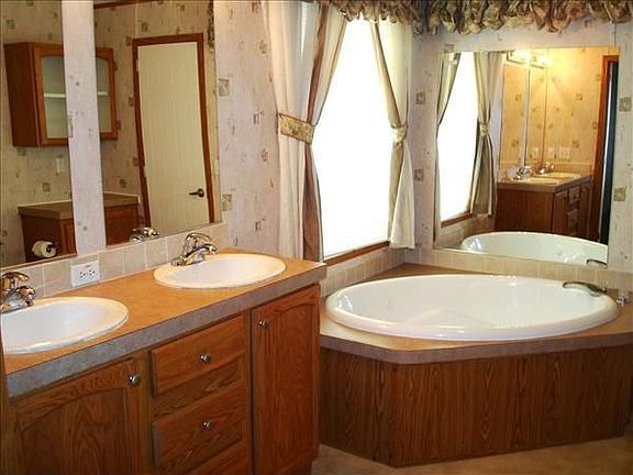 Very large, spacious, and clean 2300 square footage manufactured home, well maintained. Split bedroom floor plan, master suite has his/her closets plus walk-in closet, garden/jacuzzi tub, and walk-in shower. Extra wide hallway has built-in desk, lots of storage space. Lrg family room with built-in 42' wide-screen tv with surround sound and a wood burning fireplace. Lrg laundry/mud room. Security system on home. 6 footage privacy fencing in huge back yard, back deck. MLS #134938 $120,000