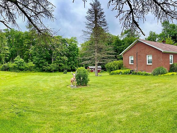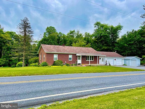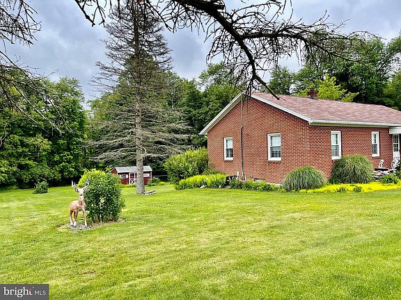 Upper Adams Quality all brick rancher on 3.95 acres. Home features 3 bedrooms, oak hardwood flooring, large eat-in kitchen with birch cabinetry, central air, full walk out basement, walk up attic, first floor laundry room, family area that opens to a large deck, shop, 2 car attached garage, 1 car detached garage, and garden shed. Exterior features include a black top drive way, fish pond with water fall, beautiful back yard, amazing plantings and landscaping. Wander across the creek into the enchanted woods. This property has so much to offer. Many signs of wild life and deer trails throughout. Property is surrounded by mountains, rolling pastures, water views and forests. You can capture a view from ever direction. Rare find, must see.
