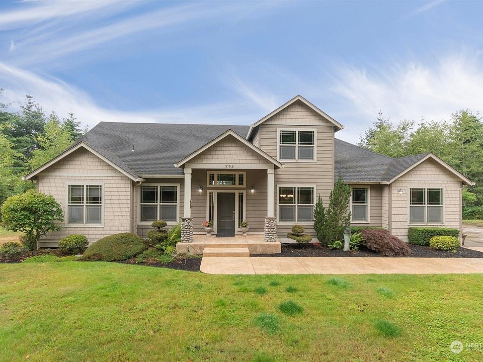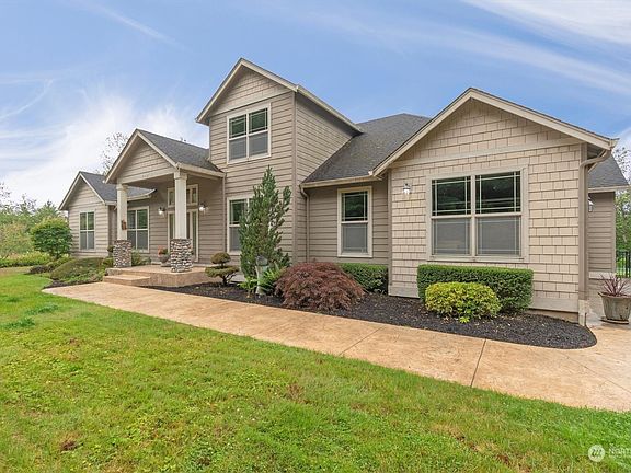 If seclusion and privacy is what you seek, this 5acre property with a view of the Columbia River and Mountain Range, is for you. Ample space within this home. Main floor provides office/den(could be 5th bedroom), dining room, eat in kitchen, breakfast nook, living room with fireplace and built in entertainment center, primary bedroom with two walk in closets and ensuite. Upstairs hallway overlooks first floor living room, includes two bedrooms, one full bath and a large family room or second primary suite and desk nook. Beautiful stamped concrete walkway to entrance and back patio. 3 car garage. Hot water heater only a couple years old. Room for animals, shop, barn and more. Low maintenance yard with sprinkler system and mature landscaping.