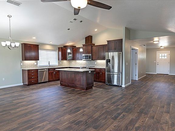 - Interior Features: Master Downstairs, Walk-In Closet(s), Ceiling Fan(s), Kitchen Island, Vaulted Ceiling(s)