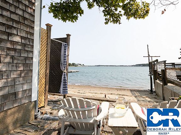Rare opportunity to own a beautiful and affordable waterfront property! Adorable beachfront home with tons of curb appeal reminiscent of a Nantucket cottage. Charm abounds in this sun-filled home with french doors, windowseat, stained glass window covers and wooden beam. Designer kitchen with granite and butcher block counters. Spacious spa-like bath with radiant heated floors and whirlpool tub. Gleaming hardwood floors throughout and spectacular views from nearly every room. Be lulled to sleep by the gentle waves and wake up to a gorgeous sunrise over the water. Outside find the sandy beach and enjoy sunning, swimming, kayaking and boating. Rinse off in the outdoor shower. Currently configured as a 2 bedroom plus adjoining office with cedar closet. This home has been meticulously maintained and exceptionally well cared for. Newer Harvey windows, custom Levolor blinds, and exterior shingles. Enjoy living, working and entertaining in your year round vacation home.