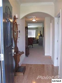 Beautiful 2 bed, 2 bath condo located in the city of Sevierville. This is an end unit, all brick condo w/2 car garage and is conveniently located near shopping, dining, hospital and minutes to Gatlinburg and the National Park. The Riverbend Garden complex has walking trail access along the Little Pigeon River with water view and a view of the beautiful downtown courthouse. Builit in '07, this like new unit has a large master bedroom w/garden tub, shower and walk-in closet. Vaulted ceilings in living room and master bedroom. 9' ceilings in second bedroom and entrance foyer, beautiful gas fireplace in living room, nice laundry w/pantry, large kitchen with plenty of cabinets, adjoining dining area, 5" crown moulding. This unit is a non-smoking, second home and has been used very little. Low HOA fees are a plus! If you have ever wanted to live near and be a part of the Great Smoky Mountains community, this is the home for you. Brokered And Advertised By: Atop Ole Smoky Realty and Rentals, Inc. Listing Agent: JOHN STEELE