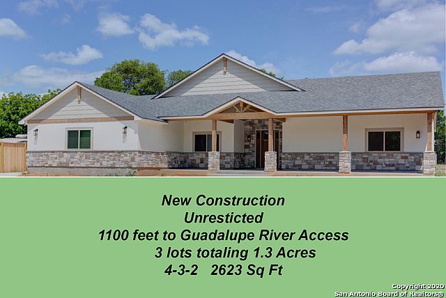 Charming newly built spacious home on over an acre. Short walk to the Guadalupe River. The open area living spaces let everyone share in the party. With schools and recreation just out the door you'll be enjoying life at the lake and the river! This home is highly energy efficient, with zoned AC and insulated to the max! UNRESTRICTED- Great for Investment, weekender, or forever home. Be sure to take the virtual walk thru link on this one!