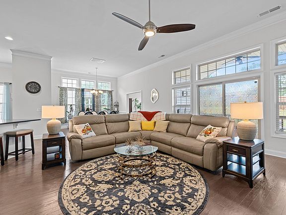 Welcome to this spacious 5 bedroom home where comfort and sophistication meet in perfect harmony. Main floor living is made easy with a large FIRST FLOOR PRIMARY SUITE along with 2 additional bedrooms, full & half bathrooms, office/sunroom & laundry room. Imagine effortless entertaining with this open floor plan offering easy flow from the kitchen, featuring expansive granite counters and walk in pantry, to the breakfast nook, dining room and living area complete with fireplace and built in cabinet. The living area is filled with light thanks to the two walls of windows that reach the 11.5' ceiling. The easy living continues on the large, covered, back porch that opens to a fenced, back yard perfect for entertaining, playing, gardening & pets. Second floor features two additional large bedrooms (one would make a fabulous bonus room) and full bathroom. Creekside is ideally located just 20 minutes to downtown Raleigh and 5 minutes from the new NC-540 exchange making easy access to RTP, the airport & all areas of the Triangle.