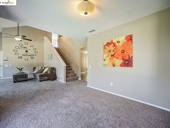 This alluring home welcomes you with a spacious family room featuring vaulted ceilings, neutral paint, open to the formal dining room and allows access to the low maintenance landscaped backyard! The open kitchen and living room combo features upgraded cabinetry, matching appliances, and a breakfast bar! Enjoy your morning cup of coffee bundled up in your family room next to the cozy wood burning fireplace. New improvements to this home include a tankless water heater, new AC/Heating system, new windows/glass doors, and upgraded bathrooms. Enjoy family gatherings in this immense, landscaped backyard. Fully covered stamped patio, paved walk way around home, turf and a fire pit, ideal for those warm summer nights! Great community with a pool & RV/Boat storage. Conveniently located. Walking distance to Creekside park. Just minutes from schools, freeway access, and local shopping centers.