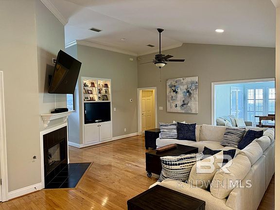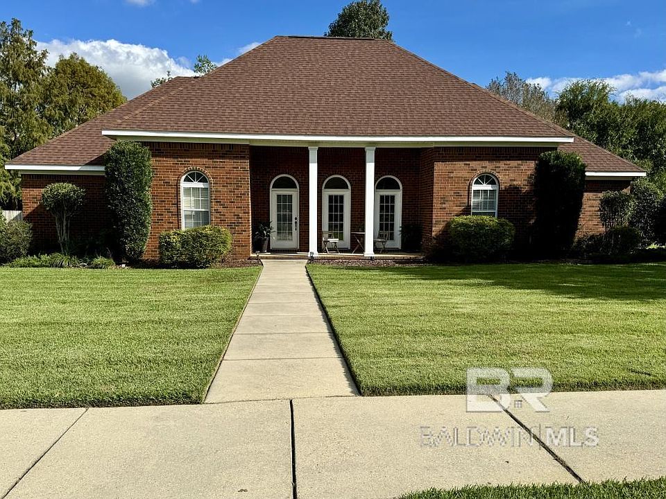 Fairhope Split Floor Plan home w/ a Rocking Chair Front Porch located on a ½ acre CORNER lot Featuring 3 Bedrooms, 2 Bathrooms, an Office w/ a Separate Entrance, Sunroom, Separate Dining Room, 2 Car Side Entry Garage and HUGE Backyard. Rain Bird Irrigation system is on WELL Water to keep your yard the prettiest on the block, NEW Fortified Roof ‘20, NEW AC unit ‘20, Freshly Painted, Ring Doorbell on both Front & Side Entry Doors, Outside Camera Conveys, Crown Molding, Hardwood Floors throughout w/ tile in wet areas and carpet in 2 additional bedrooms. Updated Kitchen w/ White Custom Cabinets, NEW Oven/Stove (2/23 w/ Warranty), Stainless Steel Appliances (Kitchen Refrigerator Conveys), Granite Countertops. The living room vaulted ceiling reaches 12ft w/ a Gas Fireplace and the Oversized Primary Suite is Connected to the Office with a Primary Bath to fit the whole family, double vanities, separate shower and Walk in Closet. The Back Porch has new Shades to protect from the afternoon sun, new custom steps leading to the level oversized fully fenced in Backyard with 3 fig trees. Garage has a Storage Room w/ built in shelving and Cabinets. Wired for AT&T Fiber Internet. Idlewild Neighborhood has a community pool. Buyer to verify all information during due diligence.