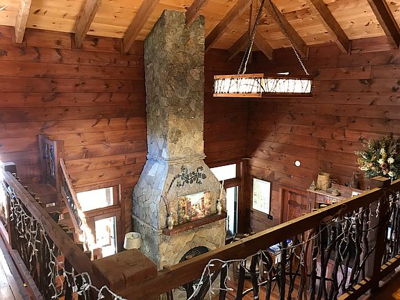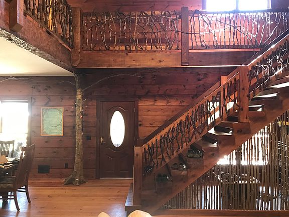 Private homestead in the Blue Ridge Mountains. 8+ acres. Borders 500,000 acres of protected State Forest. Gravity fed pond. Stream with waterfall. Organic raised bed gardens adjacent to 12 X 25 greenhouse. Mini orchard with a variety of apple, pear, peach, plum and cherry trees. 12 X 36 custom designed Chicken Coop. 35 X 45 metal barn. Edible landscaping including fig, nut trees, berry bushes and an herb garden. Custom built 4000+ sq. ft. Timber Frame home with 28 foot ceiling in living room and massive stone fireplace. Gourmet kitchen. 3 en suite bedrooms. Full finished walk out basement. Workshop and 3 car garage. Custom grapevine accents on catwalk and railing. Luxurious country living.