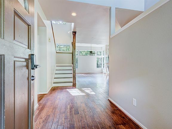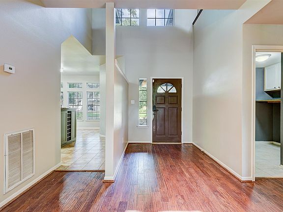 Welcome to Clover Park in Panther Creek, one of the most connected areas of The Woodlands. This 4-bedroom home offers a smart layout, flexible spaces, and direct access to trails that lead to parks, playgrounds, schools, VillaSport, Local Table, Torchy’s, and Velvet Taco. The main level has a defined floor plan with a private kitchen, a dining room open to the living room, and a first-floor primary suite with tall ceilings. The kitchen includes a breakfast bar and a bright nook with large windows facing the front yard. Upstairs, two bedrooms share a full bath with double sinks. A few steps above is a large bonus room and an additional bedroom, ideal for children, guests, or a home office. The backyard is quiet and versatile with a covered deck, green space, and full fencing. The yard has room for chickens, gardening, or a pool. Trails nearby make it easy to walk or bike to the park, pond, schools, dining, and shopping. Schedule your showing today!