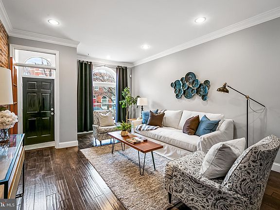 Spacious renovation nestled on a wide, tree lined street in a prime location, just 2 blocks from the beautiful green spaces of Patterson Park, close to dining, shopping, and nightlife in Canton and the Highlandtown Arts District, and convenient to I-95 for commuters. This classic brick front home has been impeccably maintained and has 2+ years remaining on the CHAP TAX CREDIT which saves thousands. This light filled, wide row home offers the perfect mix & warmth of original charm with exposed brick walls and wood floors combined with modern amenities and updates that cater to today's lifestyle. The open floor plan of the main level includes a large living room, dining room, and a beautiful, well designed kitchen with stainless steel appliances, large center island, and upgraded countertops and appliances. The kitchen leads to a private, easy to access rear PARKING PAD! You’ll love the smart layout of the upper level that is great for sharing with a roommate or houseguests. The large primary bedroom suite easily accommodates a king sized bed & offers a private en suite bathroom and great closet space. There is another large bedroom and 2nd full bathroom on this floor along with easy access from the 2nd floor to the multi-tiered decks. The rooftop deck is large and lovely and expands your living space outdoors with city skyline and green park views. The finished lower level includes a large third bedroom, a half bathroom, a separate office/den, laundry, utilities, and storage. This picture perfect home offers a great value with almost 2,000 square feet of finished living space, the ease & convenience of a private PARKING PAD, a location that is close to amenities and commuter routes, and TAX CREDIT savings.