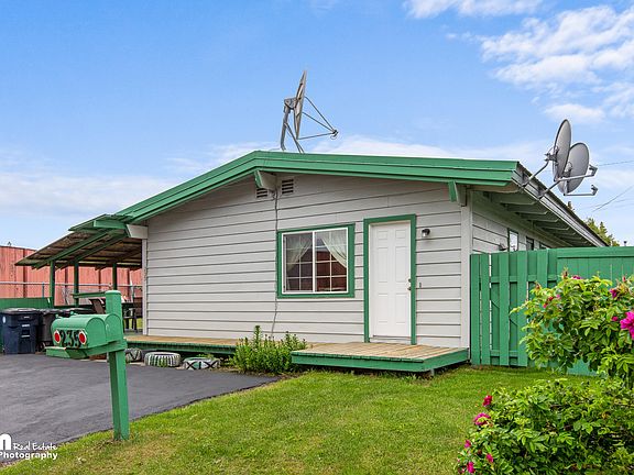 Ranch style duplex near JBER. This four bed, two bath home has a large covered porch and deck. Includes a 760 sq ft detached garage that is accessible from the alley. Metal roofing installed in 2015, and a brand new driveway installed in June 2020. Located within 2 miles from groceries, gyms, trails, 20+ restaurants, and 14+ parks. Less than a 10 minute drive to JBER and Tikahtnu Commons.