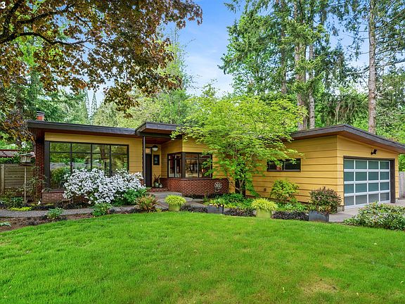 This is the best of what Mid-Century Modern architecture has to offer! Located in the quiet Collins View Neighborhood, this remarkable home sits on nearly half an acre and boasts huge sweeping windows, rounded walls, a majestic outdoor fireplace, double car garage, vintage retro kitchen, imported light fixtures, built-ins and a large fully-waterproofed lower level with tons of extra living space + wine cellar. The 50s vibe is alive and well in this beautifully laid-out home surrounded by private, lushly landscaped grounds with a covered patio and outdoor sauna + shower.