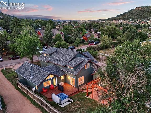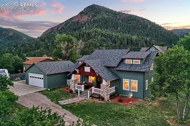 PHENOMENAL Craftsman home with custom woodwork and all the trimmings in beautiful Palmer Lake. Built on the historic site of the livery belonging to Jesse James Gang member, Cole Younger,this home boasts over 3500sf, with two master suites, including one on the main level, incredible mountain views, an inviting floorplan, dramatic vaulted ceilings, and amazing custom woodwork and cabinetry. Close proximity to the restaurants and shops of Palmer Lake, as well as several trailheads. Fantastic outdoor entertaining spaces, including a hot tub and covered patio with up-close views of Chautauqua Mountain, main level back deck, and wonderful, welcoming covered front porch. Beautiful yards with mature wild plum hedge surround this gorgeous home. Luxurious master suites with walk in closets, 5-piece bath, including antique tub in one of the masters. Open concept kitchen, perfect for entertaining. Granite counters, custom white oak cabinetry, stainless steel appliances, and breakfast bar. Lovely and inviting living spaces, vaulted ceilings, hardwood floors and wood stove. Large, unfinished, roughed-in basement which could easily be finished to include another bedroom and/or living space. Great access to Denver or Colorado Springs via I-25 or HWY 105.