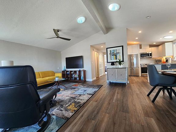 Pristine perfect! Enjoy the best the desert has to offer in this fully updated home in ''The Canyon'' in Cathedral City. This two bedroom and two bath home features a great room with cathedral ceilings, breathtaking views of the mountains, new LED can lighting and a contemporary ceiling fan. This home is beautiful with new luxury vinyl flooring throughout, new baseboards and contemporary paint. Enjoy cooking in the fully remodeled kitchen, with quartz countertops, stainless sink, complete Frigidaire appliance package and a spacious pantry. The primary bath is fully remodeled with a beautiful walk-in shower with a bench and grab bar and is appointed with a tasteful new lighting fixture and wallpaper. The primary bedroom is spacious and includes a huge closet large enough to accommodate your needs. The new ceiling fan provides comfort. The guest room will accommodate a queen size bed, or may be used as a den. In addition, the ample closet is designed to contain household cleaning appliances or may be use as an additional place for clothing. The new Maytag washer and dryer are discretely placed behind custom contemporary doors in the hallway that connects all parts of the home. The backyard is wonderfully spacious and the mountain views spectacular. The community club house features a spa and pool, workout room, library, shuffleboard, billiards, and tennis and pickleball, Be sure to ask about the qualifications you need to apply for residency in this 55+ community.