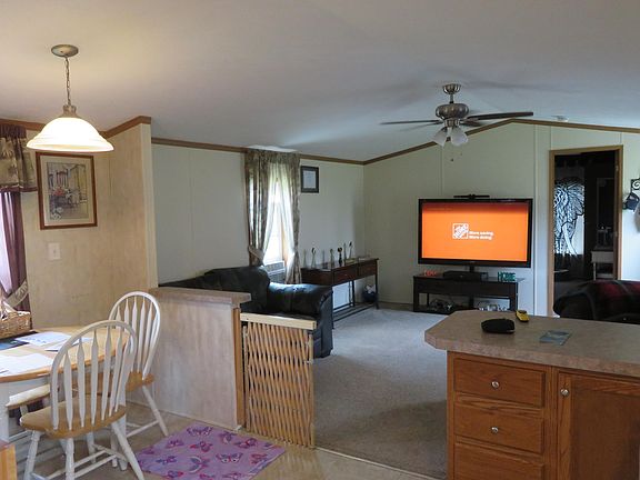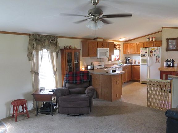 Turn key condition mobile home with newer carpets, gas stove, dishwasher, washer and dryer. Valuted ceilings, 1.5 baths, custom kitchen, large living room and 2 bedrooms. Lot rent $380.00 pending approval by Maple Lane Park regarding lease.